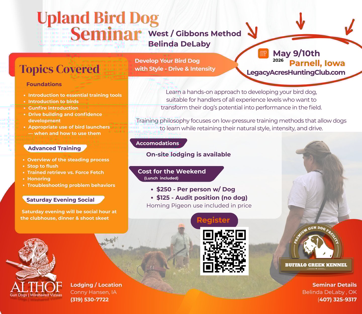 (dogs not allowed – The Club House has a climate controlled option for you to put up dog crates).