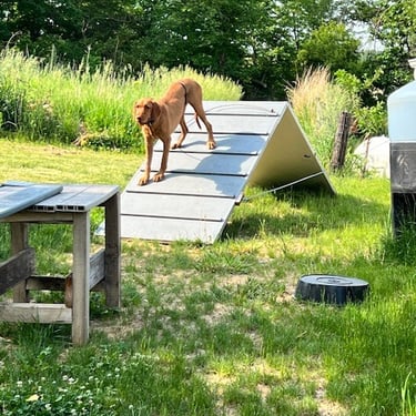 At home, Grit is always eager to be part of whatever we’re doing—whether napping nearby, supervising a landscaping project, or keeping watch over the BBQ from the porch.