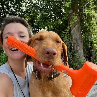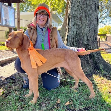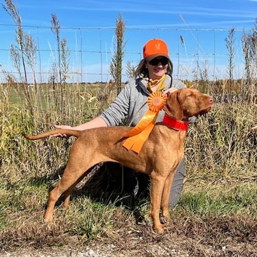 In the summer of 2024, after intense preparation, she earned a NAVHDA Utility Prize 1 score, qualifying her for the 2025 Invitational. There, she earned the prestigious Versatile Champion title, becoming only the sixth Wirehaired Vizsla in breed history to do so.