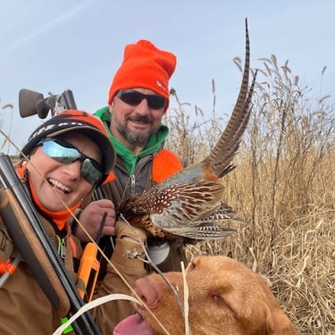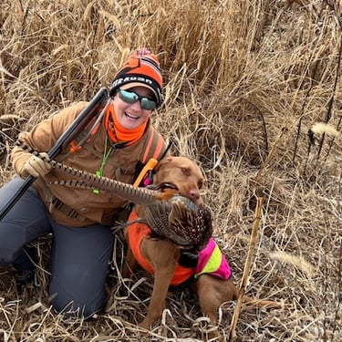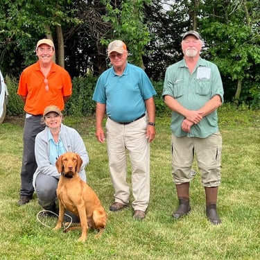 Thanks to her exceptional water work, she is the go-to dog when loading the truck to head to the the duck blind. Yet she shines just as brightly in upland pursuits, whether searching for grouse in Michigan or chasing sharpies and pheasants in North Dakota & Iowa. She is the perfect representation of versatility that defines a true "Versatile Hunting Dog".